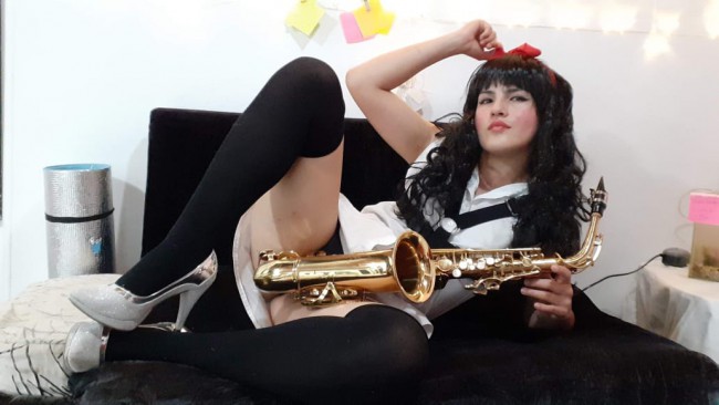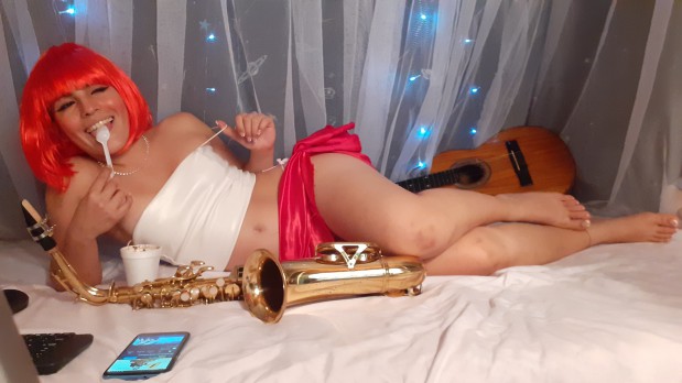 Me excita tener el saxo entre mis piernas y tocar una melodía para ti.